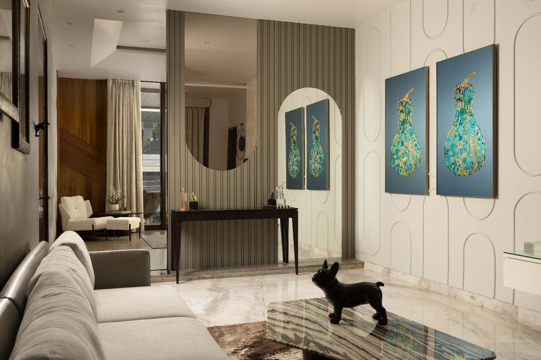 A luxurious blend of Indian modern interior design and modern elegance.